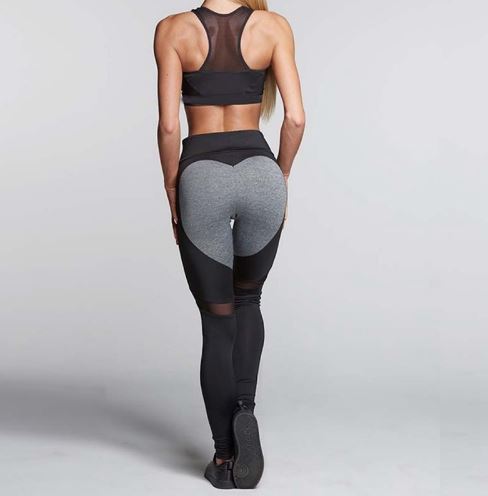 Fashion Heart Pattern Mesh Splice Leggings Athleisure Fitness Clothing Elastic Leggings Women Pants