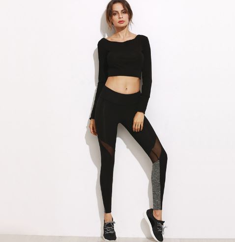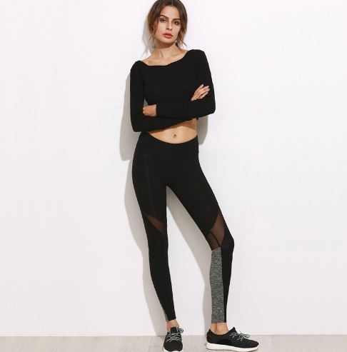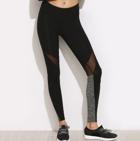 Women Casual Leggings Fitness Winter Leggings New Arrival Ladies Plain Elastic Waist Color Block Mesh Insert Leggings